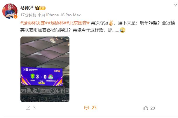 媒体人陆洋也表示,“在用冠军给这个周遭的一年画上相对圆满的句号之后,希望俱乐部能解决好自身难题,明年外战别再搞砸了,加油吧。”